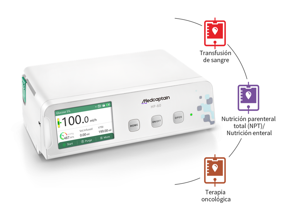 Diseñado para una amplia variedad de aplicaciones médicas, este sistema es compatible con procedimientos de transfusión sanguínea, soporte nutricional y tratamientos oncológicos, garantizando seguridad, eficacia y versatilidad en cada uso.